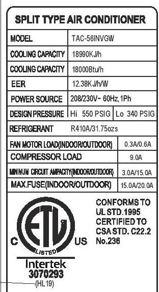 Warranty: one year parts and labor, 2 years “ALL IN WARRANTY” on the compressor,